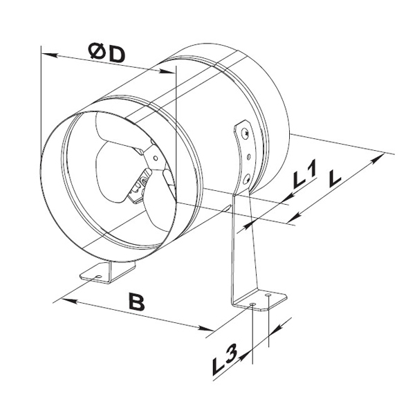 Quạt được kết nối ngang đường ống có kích thước: 150mm, 200mm, 250mm.